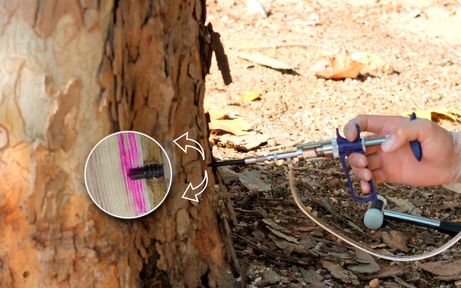 La Endoterapia Vegetal es una técnica alternativa a los tratamientos fitosanitarios para árboles y palmeras que consiste en la inyección de producto fitosanitario directamente a los vasos conductores del árbol.