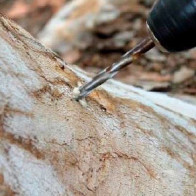 Se realiza un taladro cada 30cm., aproximadamente, a lo largo del perímetro del tronco.